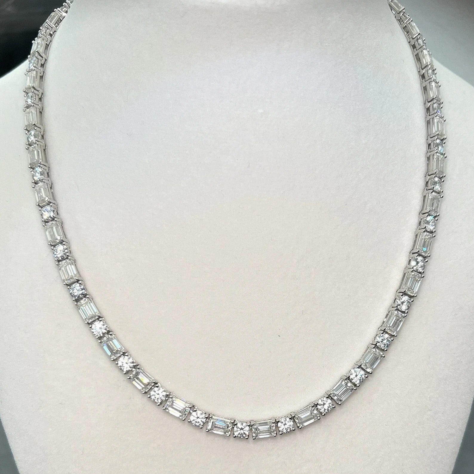 Fancy Round & Emerald Cut Moissanite Tennis Chain, Tennis necklace, Iced Out Chain, Anniversary Gift For Him Or Her