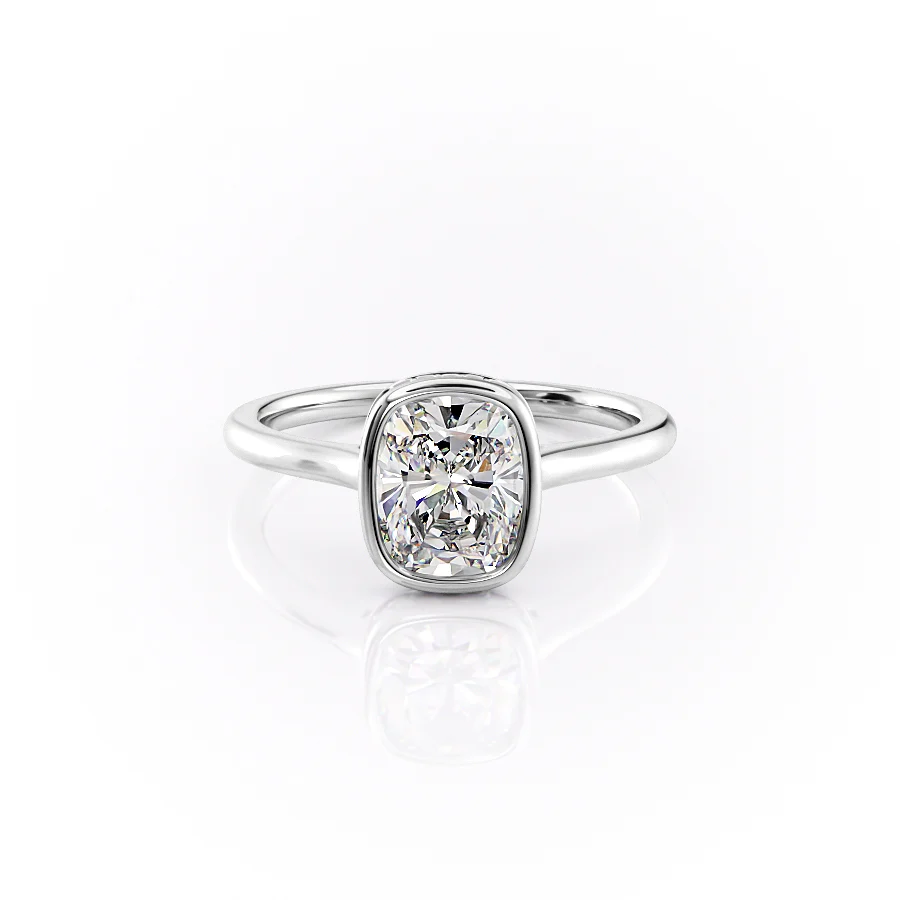 2 CT Elongated Cushion Cut Moissanite Engagement Ring Unique Bezel Set Halo Lab Grown Diamond Ring 14K Solid Gold Solitaire Diamond Ring.