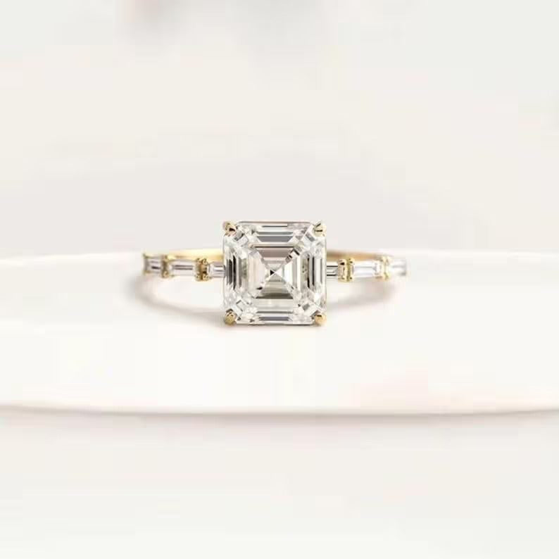 2 CT Asscher Cut Moissanite Engagement Ring Baguette Cut Pave Setting Ring 14K Solid Gold Diamond Wedding Ring Lab Grown Diamond Ring.