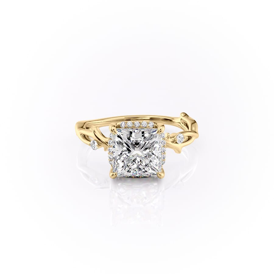 2 CT Princess Cut Moissanite Engagement Ring Princess Halo Twig Lab Grown Diamond Ring Unique Nature Inspired Ring 14K Solid Gold Ring.