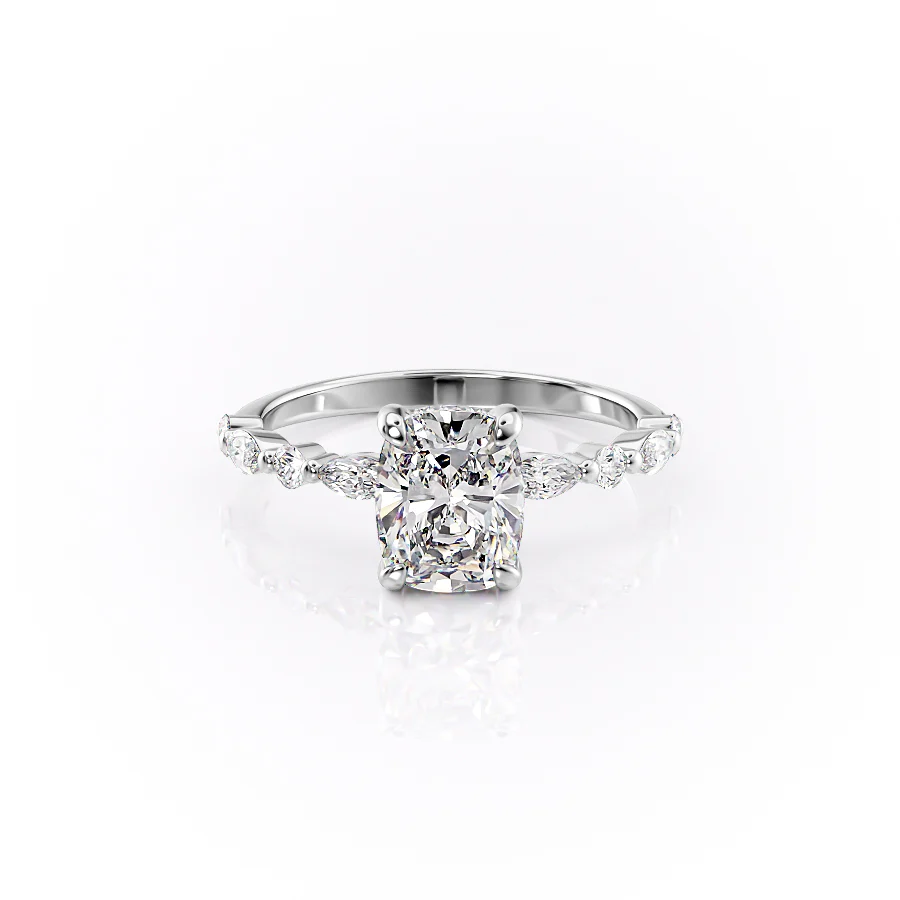 2.5 CT Elongated Cushion Moissanite Ring Marquise and Round Diamond Pave Set Lab Grown Diamond Ring Cushion Engagement Ring 14K Gold Ring.