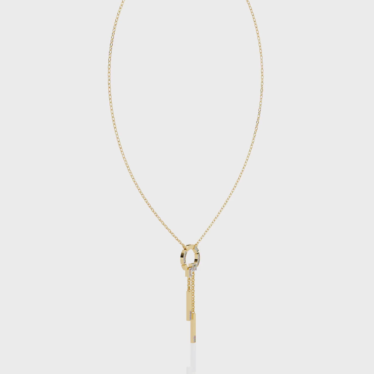 Circle Lariat Bar Drop Necklace | Minimal Y Pendant with Princess-Cut Accents | Lab-Grown Diamond/Moissanite | Solid Gold or Platinum