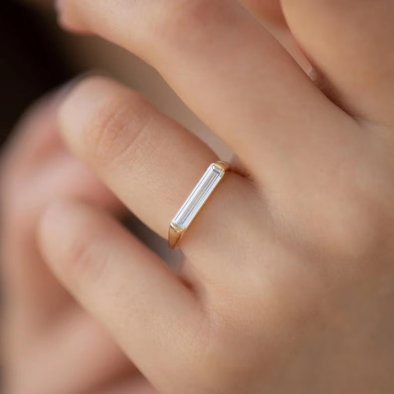 1.50 CT East-West Baguette Moissanite Solitaire Ring, Unique Long Baguette Cut Design Engagement Ring, Lab Grown Diamond Anniversary Ring.
