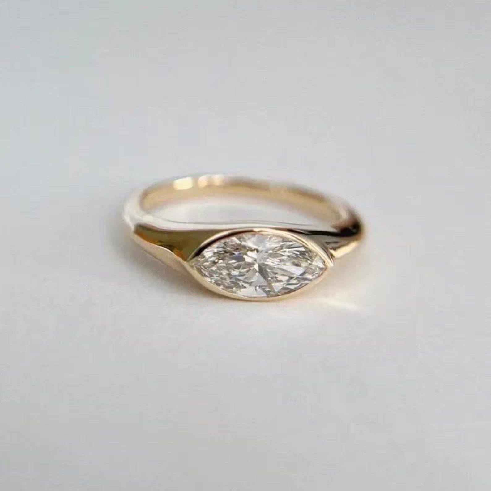 East West 1.5 CT Marquise Cut Moissanite Engagement Ring 14K Solid Gold Lab Grown Diamond Ring Bezel Set Ring Solitaire Ring Promise Ring.