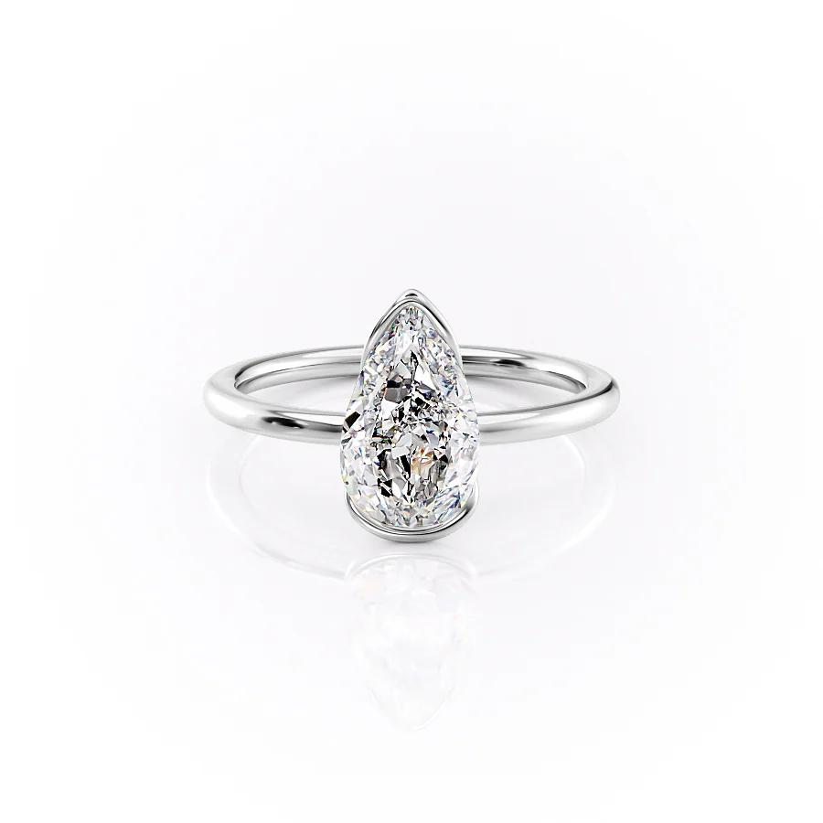 2.5 CT Pear Moissanite Engagement Ring Unique Half Bezel Set Lab Grown Diamond Wedding Ring 14K Solid Gold Solitaire Pear Anniversary Ring.