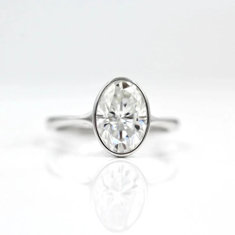 2 CT Oval Cut Bezel Set Ring Oval Cut Moissanite Engagement Ring 14K Solid Gold Solitaire Diamond Wedding Ring Oval Lab Grown Diamond Ring.