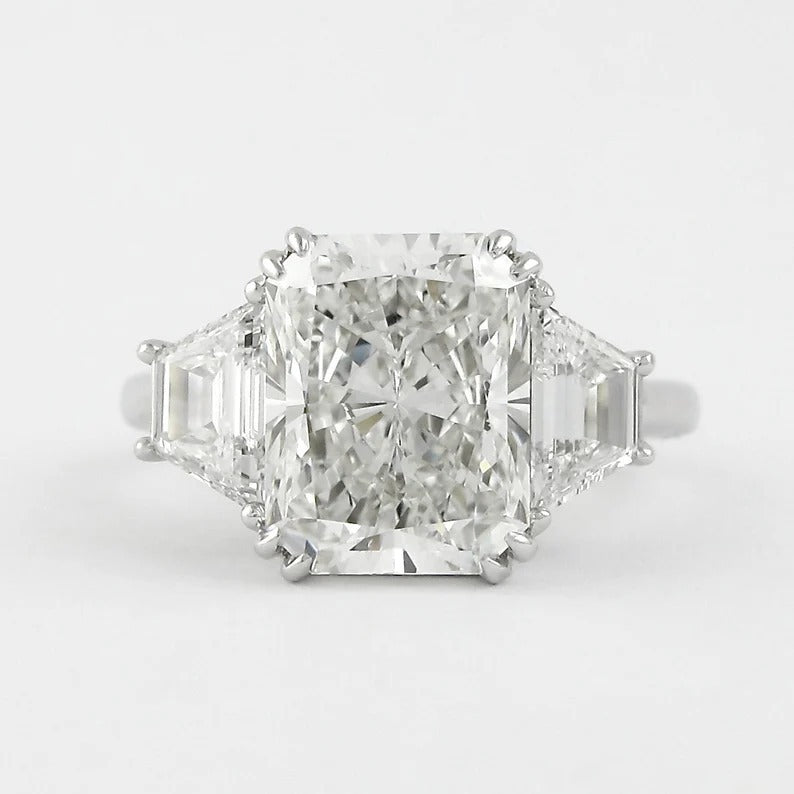 3CT Radiant Three Stone Moissanite Engagement Ring With Trapezoid Claw Prong Side 14K Solid Gold Ring For Her Radiant Lab Grown Diamond Ring