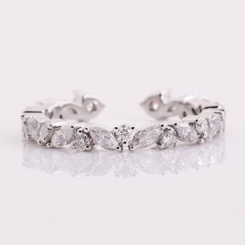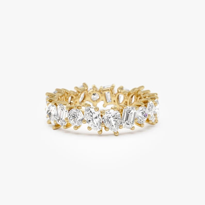 Multi-Shaped Lab Grown Diamond Band 14K Solid Gold Mixed Shape Full Eternity Moissanite Wedding Band Multi Shape Anniversary Ring For Women