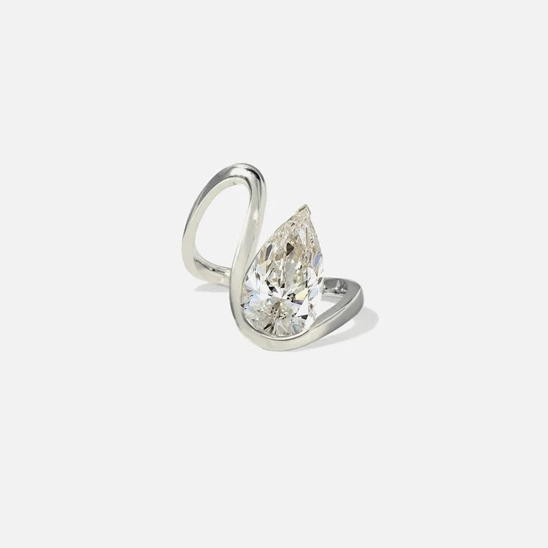 ↣2.5 CT Pear Moissanite Engagement Ring Unique Waved Style Pear Lab Grown Diamond Ring 14K Solid Gold Solitaire IGI Certified Diamond Ring.