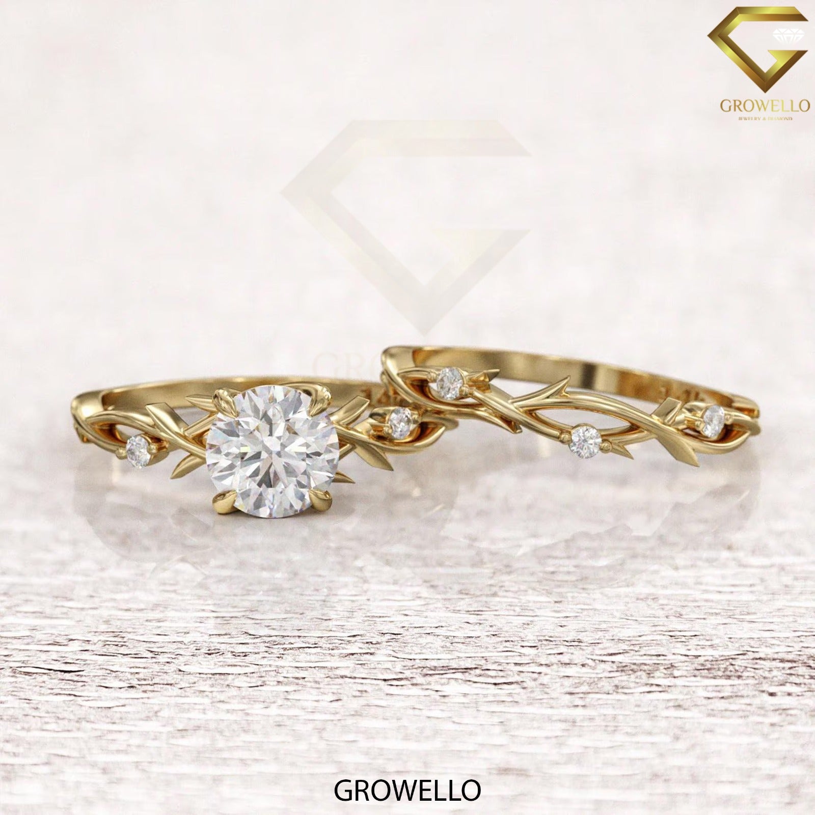 2ct round vine engagement ring, nature branch design, solid gold, lab diamond or moissanite