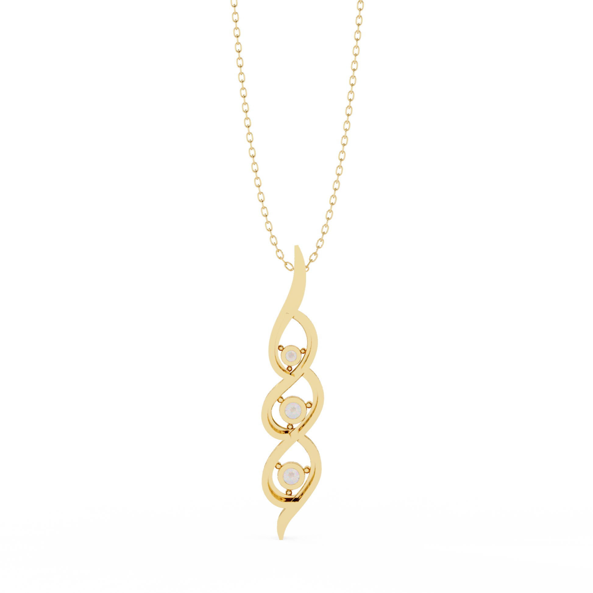A sleek, elongated “infinity” pendant that wraps three round brilliants in flowing curves—symbolizing past, present, future. Elegant, light-catching and perfect for everyday to occasion wear.