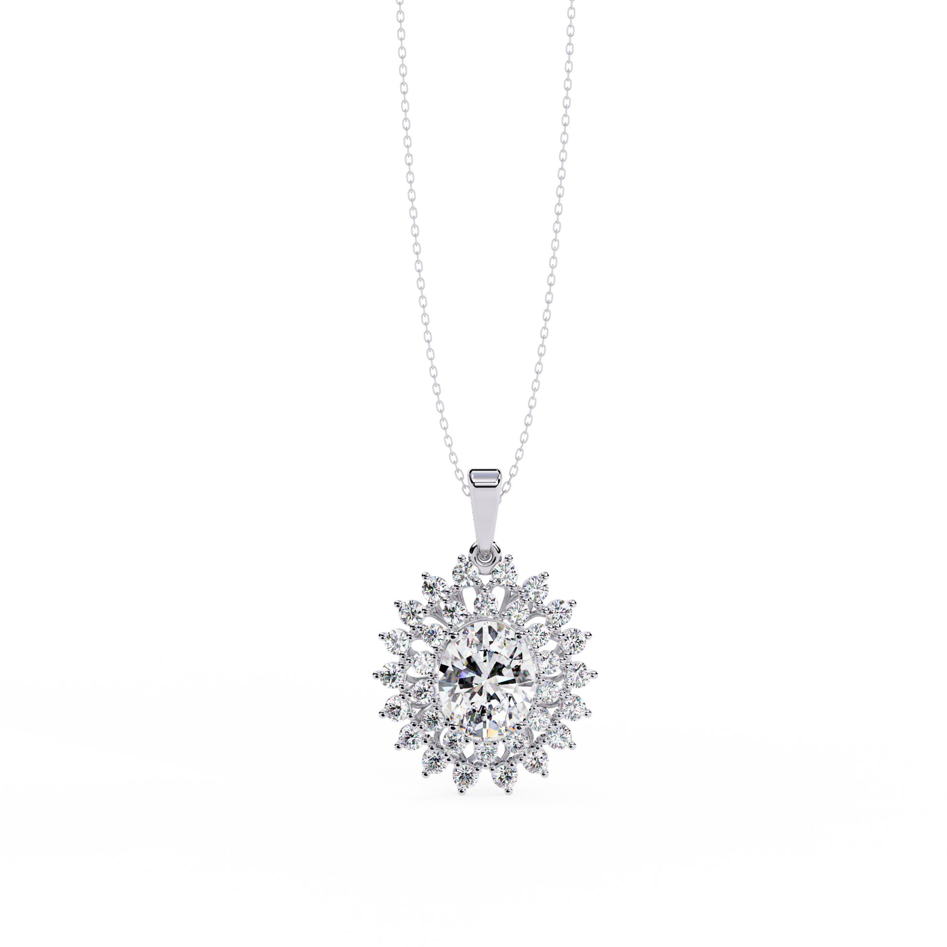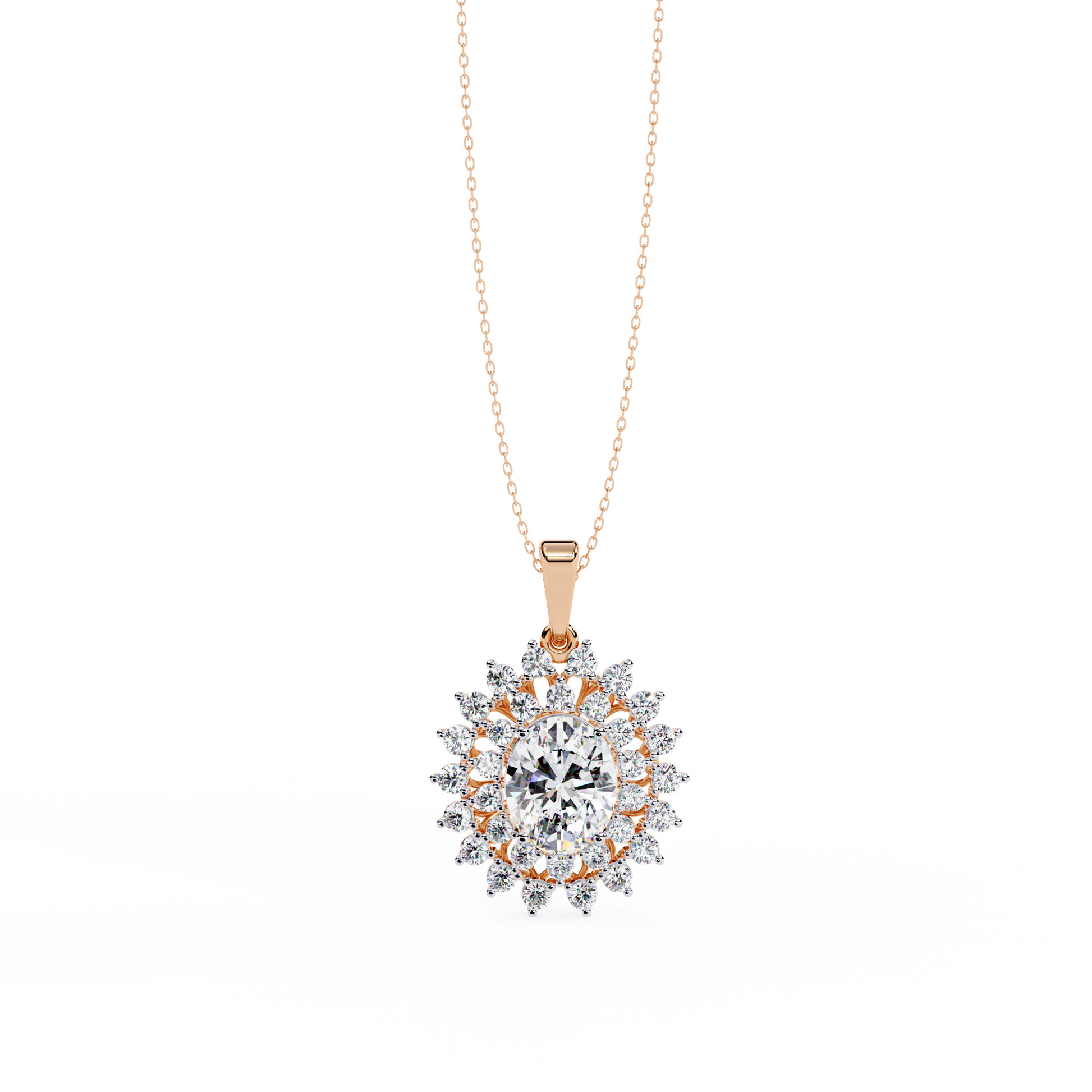 Oval Sunburst Double-Halo Pendant (1.00 ct Center)
